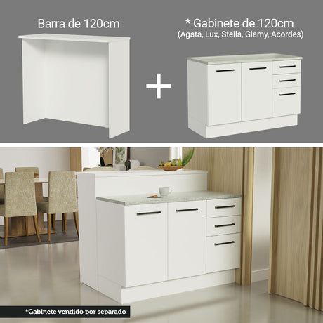 Isla de Cocina con Encimera y Gabinete Bajo 120 cm Blan...
