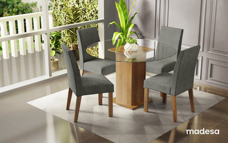 Juego de Comedor Encimera de Vidrio Circular 4 Sillas M...