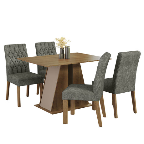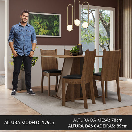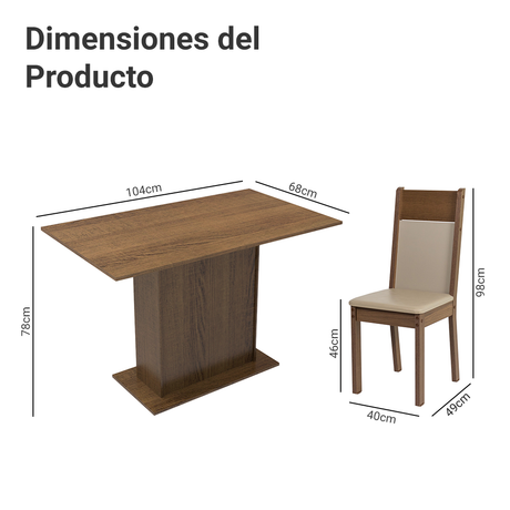 Juego de Comedor Mesa Encimera de Madera 4 Sillas Marró...