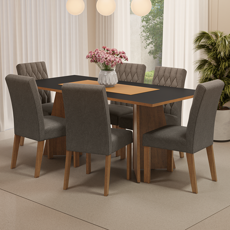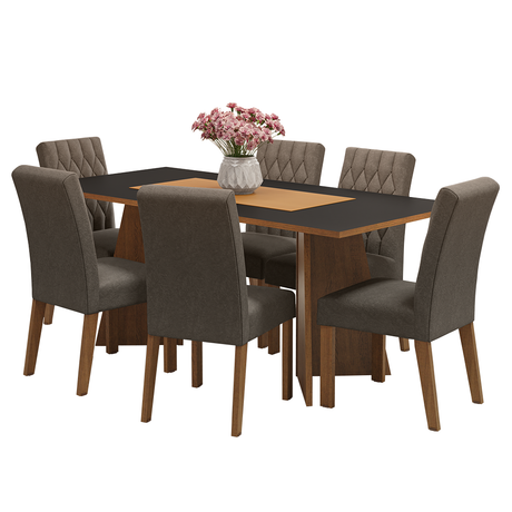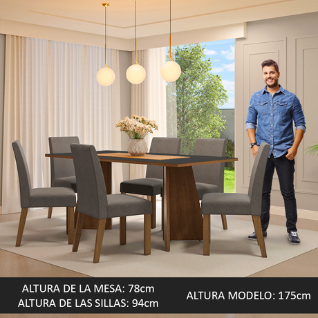 Juego de Comedor Mesa Encimera de Madera 6 Sillas Marró...