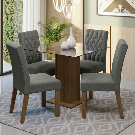 Juego de Comedor Mesa Vidrio 4 Sillas Aryeli - Marrón/C...