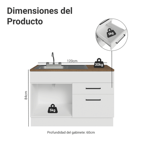 12x de $ 1,257.33 sin intereses$ 15,08800Precio unitario /AgotadoMueble de Cocina con Fregadero 120 cm 2 Puertas y 3 Caj...