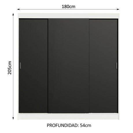 Clóset Matrimonial Reno 3 Puertas Correderas - Blanco/N...