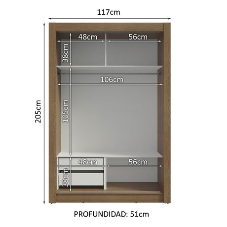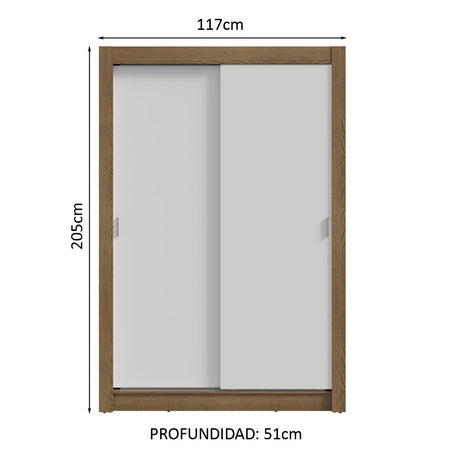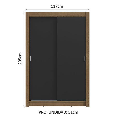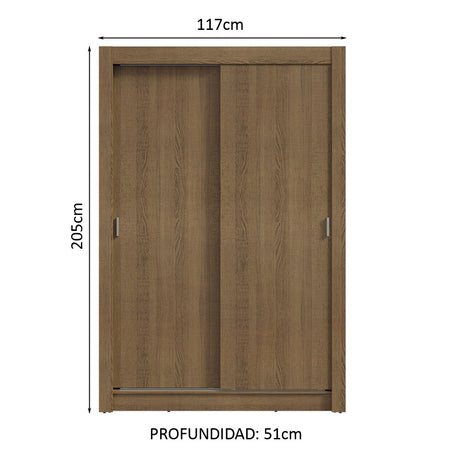 Clóset Soltero 2 Puertas Corredizas 2 Cajones Marrón/Ne...