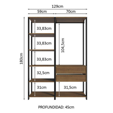 Clóset Modular Valencia 2 Cajones 129cm Marrón/Negro