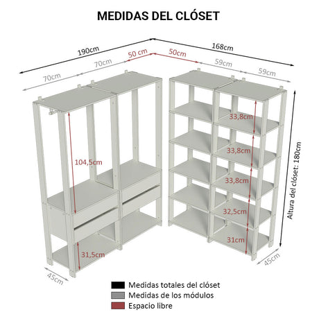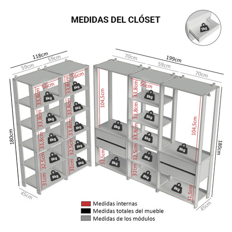 Clóset Modulado Valencia 4 Cajones 258cm Marrón/Negro 0...