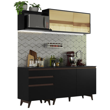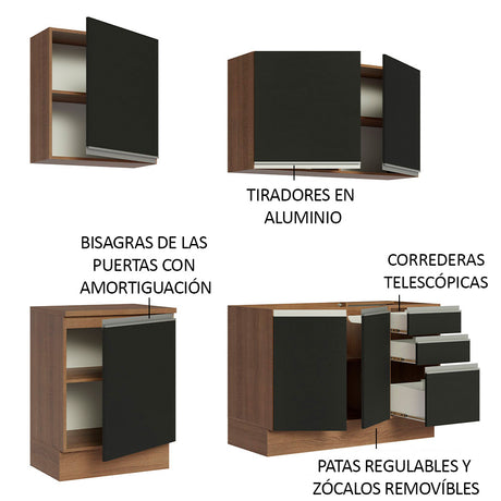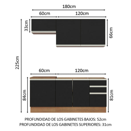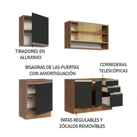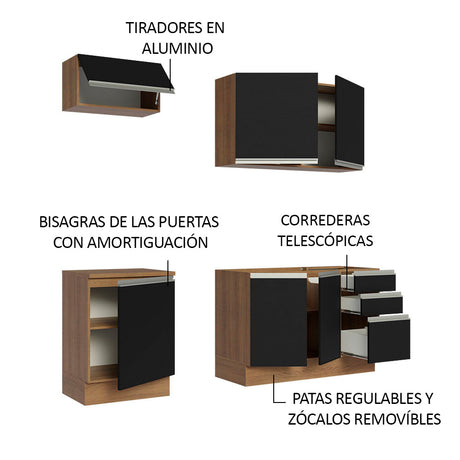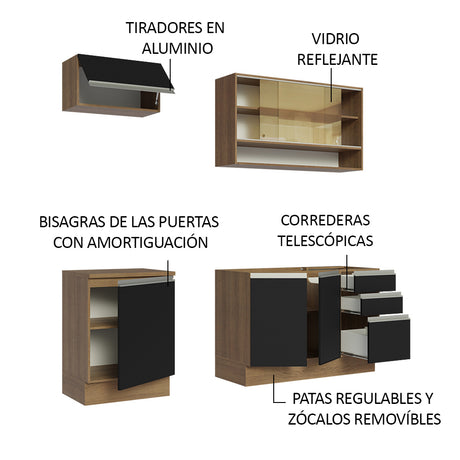 Cocina Compacta 180cm Marrón/Negro Glamy 07