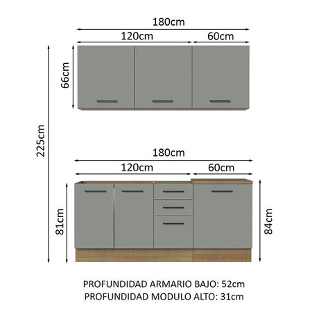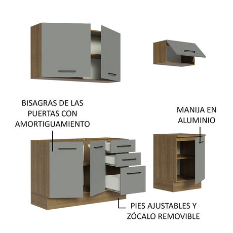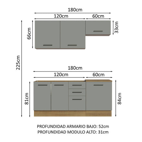 Cocina Compacta 180cm Marrón/Gris Agata 04