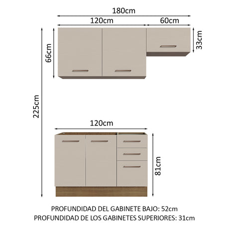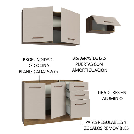 Cocina Compacta 180cm Marrón/Crema Agata 09