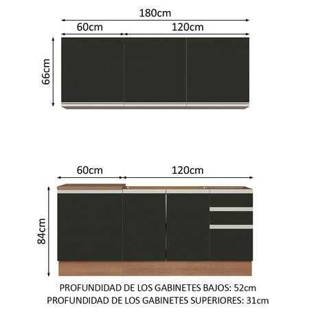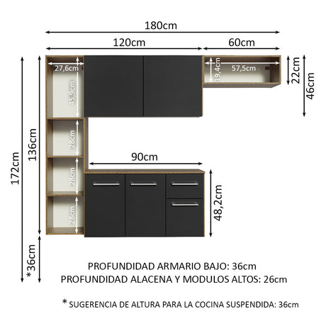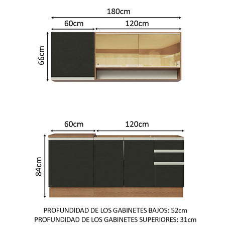 Cocina Compacta 180cm Marrón/Negro Glamy 06