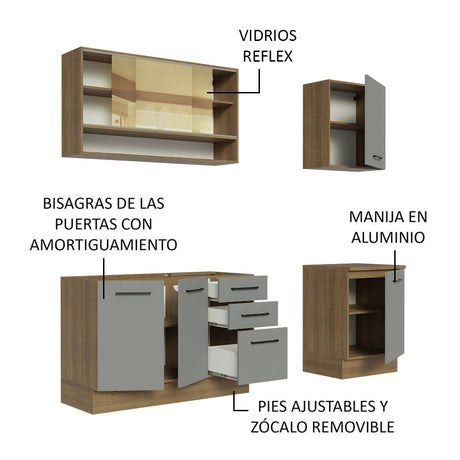 Cocina Compacta 180cm Marrón/Gris Agata 09