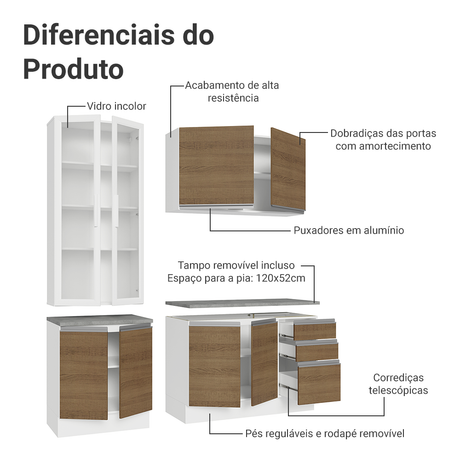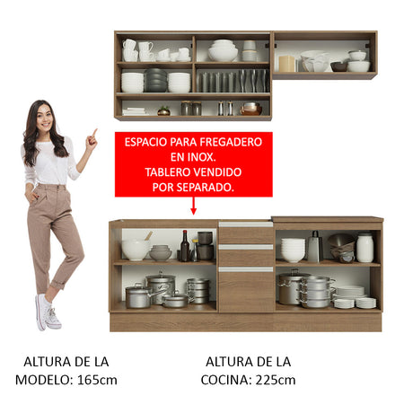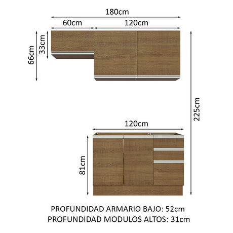 Cocina Compacta 180cm sin Fregadero Blanco/Marrón Glamy...