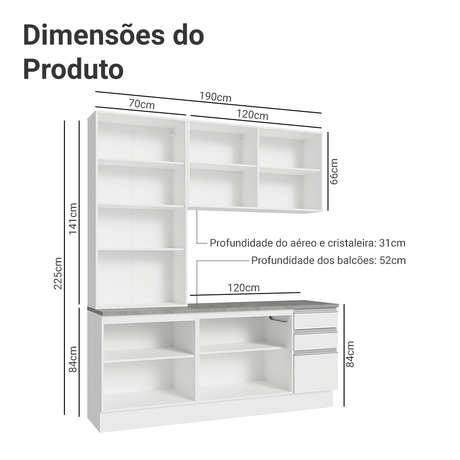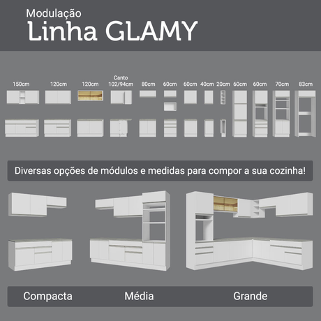 Cocina Compacta 180cm sin Fregadero Blanco Glamy 07