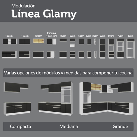 Cocina Compacta 190cm Blanco/Negro Glamy 05