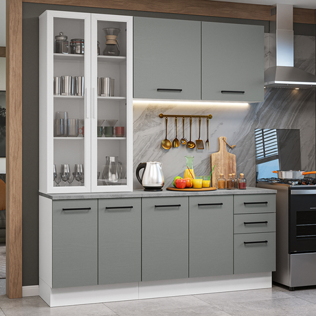Cocina Compacta 190cm con Vitrina Blanco/Gris Agata 01