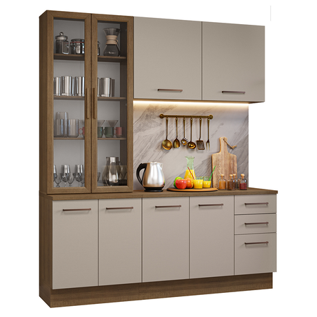 Cocina Compacta 190cm con Vitrina Rustic/Crema Agata 01