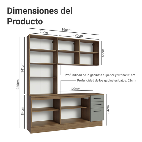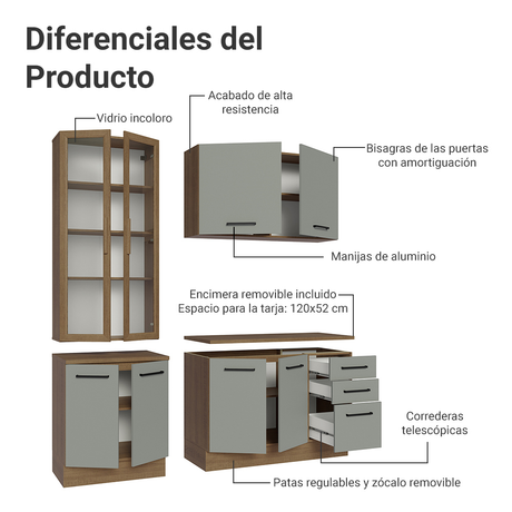 Cocina Compacta 190cm con Vitrina Marrón/Gris Agata 01
