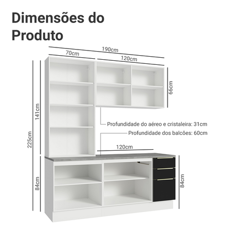 Cocina Compacta 190cm Blanco/Negro Lux 02
