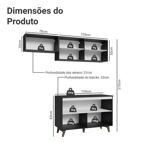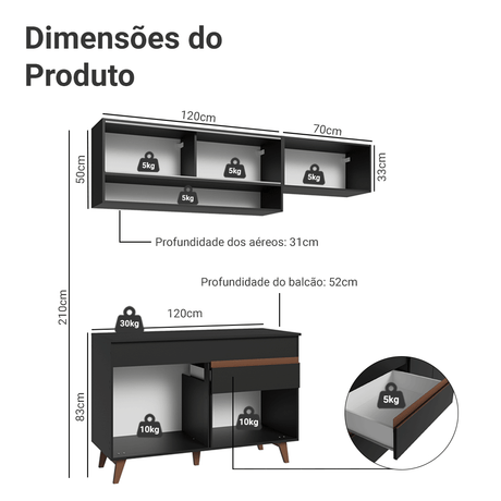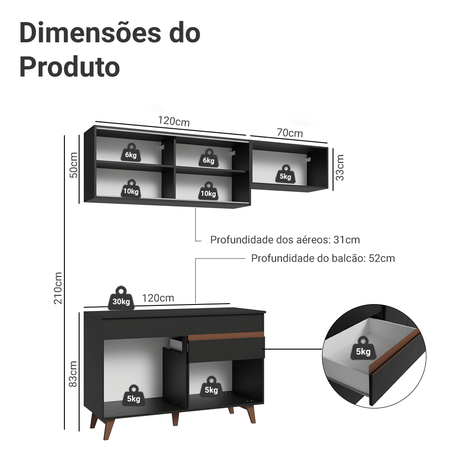 Cocina Compacta 190cm Marrón/Negro Glamy 05