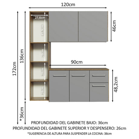Cocina Compacta con Gabinete y Despensa Marrón Emilly F...