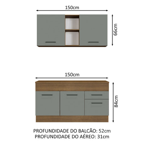 Cocina Integral 150cm Marrón con Encimera Glamy 01