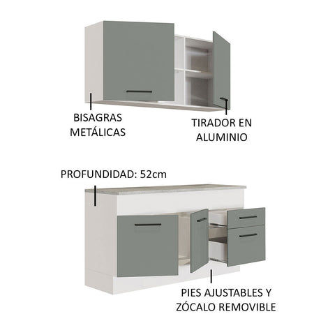 6x de $ 993.00 sin intereses30% OFF$ 5,95800$ 8,53000Precio unitario /Agotado Cocina Integral 150cm Blanco/Gris Agata 01