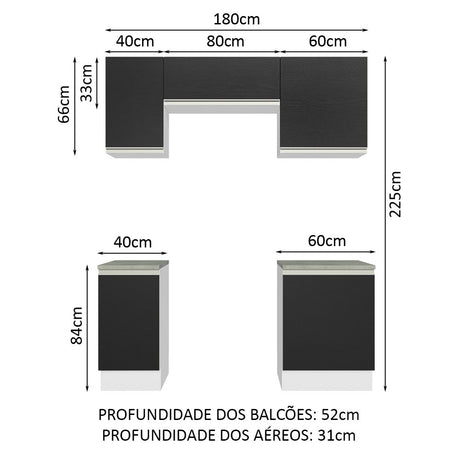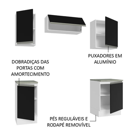 Cocina Integral 180cm Lux Blanco/Negro 01