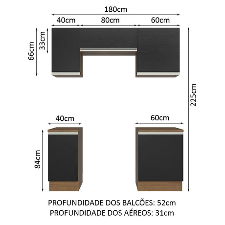 Cocina Integral 180cm Marrón/Negro Glamy 12