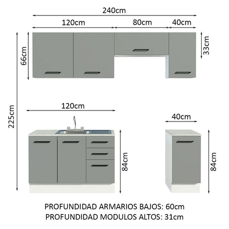 - AgotadoCocina Integral 240cm Blanco/Gris Agata 03 18x de $ 1,430.83 sin intereses9% OFF$ 25,75500$ 28,33100Precio unitario /Agotado