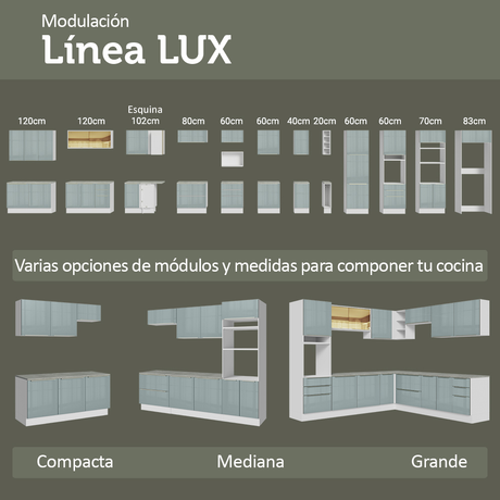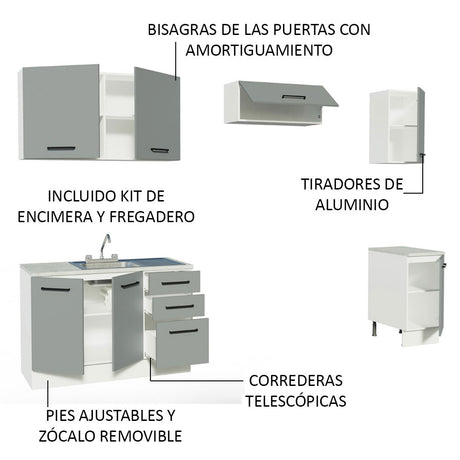 - SUPER PRECIOCocina Integral 240cm Blanco/Gris Lux 08 18x de $ 2,038.06 sin intereses16% OFF$ 36,68500$ 44,14900Precio unitario /Agotado
