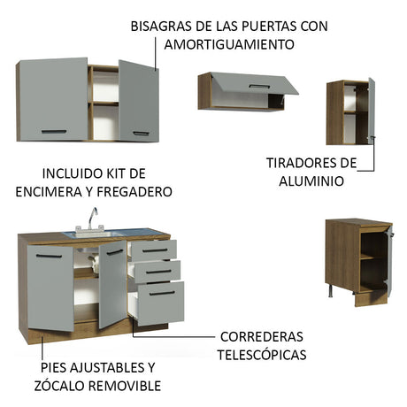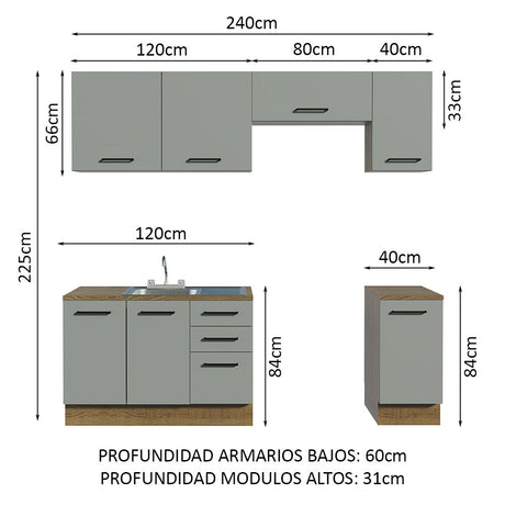 Cocina Integral 240cm Marrón/Gris Agata 03