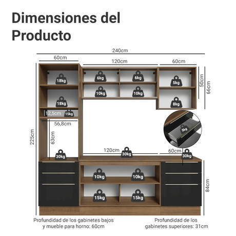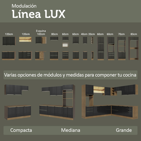 18x de $ 2,264.17 sin intereses15% OFF$ 40,75500$ 48,40550Precio unitario /Agotado Cocina Integral 240cm Marrón/Negro Lux 08