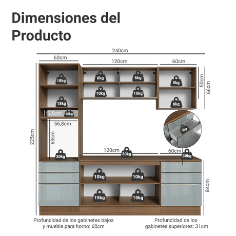 18x de $ 2,129.17 sin intereses15% OFF$ 38,32500$ 45,44650Precio unitario /Agotado Cocina Integral 240cm Marrón/Gris Lux 08