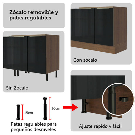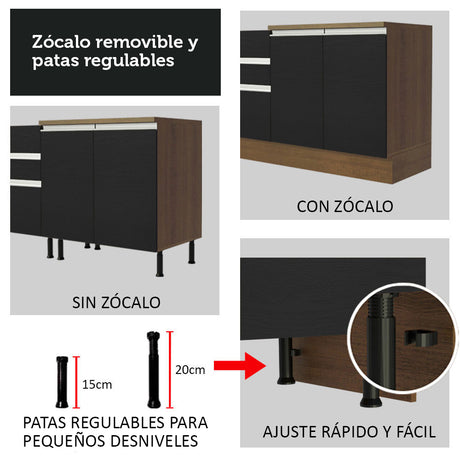 Cocina Integral 240cm Marrón/Negro Glamy 03