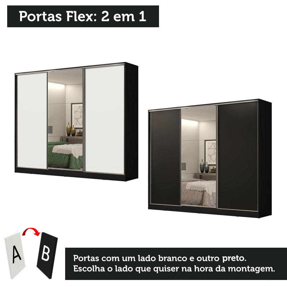 Clóset Matrimonial 100% MDF Royale 3 Puertas Corredizas con Espejo Negro
