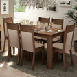 Juego de Comedor Madesa Jaíne Mesa de Madera + 6 Sillas Color Marrón/Crema Tapizadas en Tela Sintética Beige