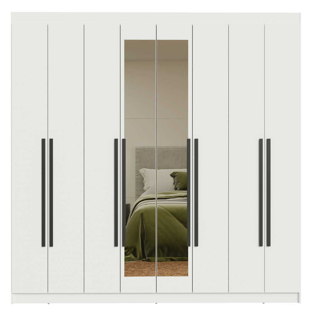 Clóset Matrimonial Venus 8 Puertas Batientes con Espejo Blanco/Blanco/Negro