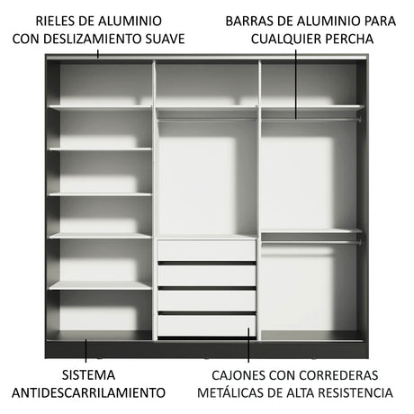 Clóset Matrimonial Mónaco 3 Puertas Correderas con Espe...