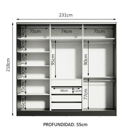 12x de $ 941.58 sin intereses9% OFF$ 11,29900$ 12,42890Precio unitario /AgotadoClóset Matrimonial Lyon Plus 3 Puertas Correderas con E...