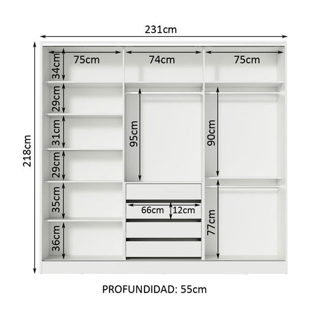 Clóset Matrimonial 100% MDF Royale 3 Puertas Corredizas...