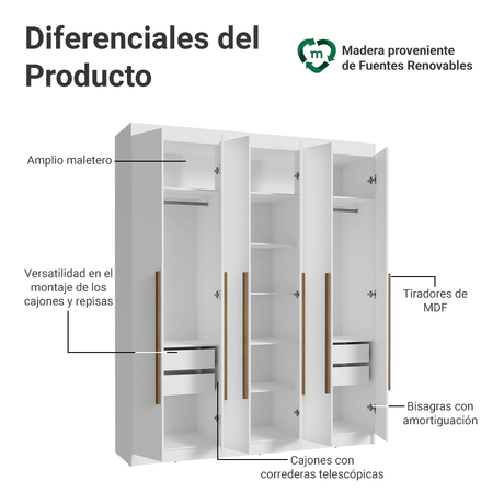 12x de $ 1,132.42 sin intereses9% OFF$ 13,58900$ 14,94800Precio unitario /AgotadoClóset Matrimonial Venus 180 cm Sin Puertas 4 Cajones B...