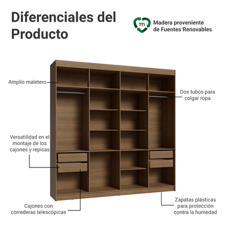 12x de $ 1,108.25 sin intereses9% OFF$ 13,29900$ 14,62900Precio unitario /AgotadoClóset Matrimonial Venus 216 cm Sin Puertas 4 Cajones M...