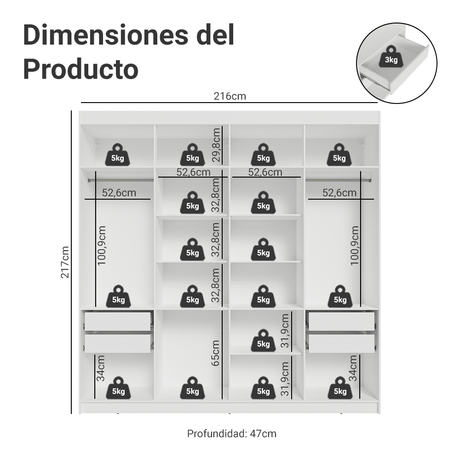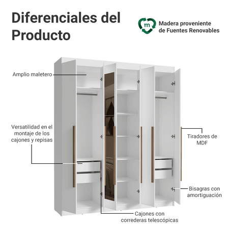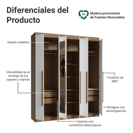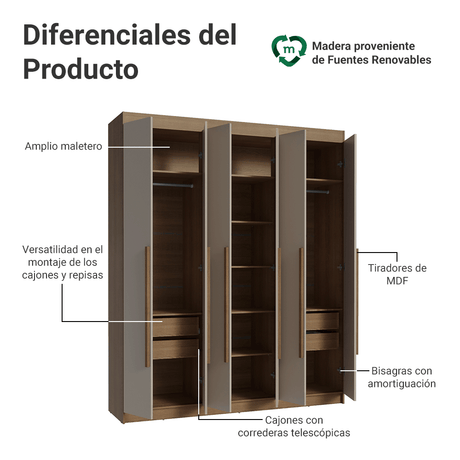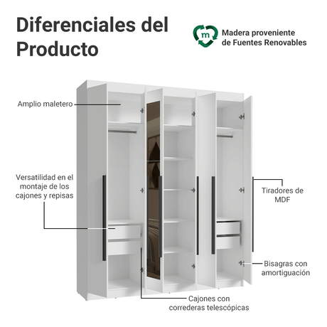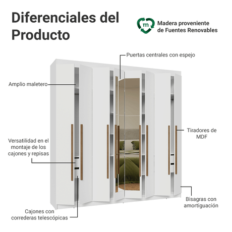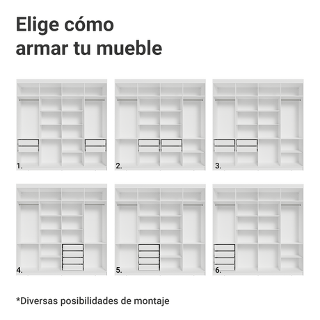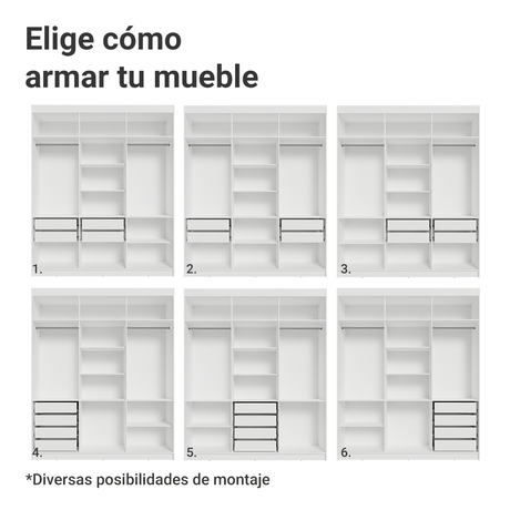 18x de $ 944.39 sin intereses9% OFF$ 16,99900$ 18,69900Precio unitario /AgotadoClóset Matrimonial Venus 6 Puertas Batientes con Espejo...