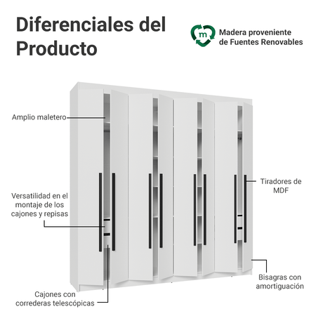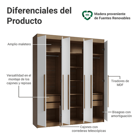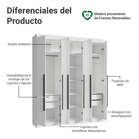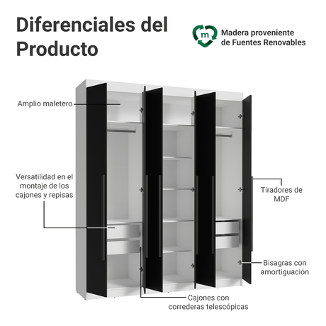 Clóset Matrimonial Venus 6 Puertas Batientes Blanco/Bla...