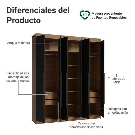 18x de $ 944.39 sin intereses9% OFF$ 16,99900$ 18,69900Precio unitario /AgotadoClóset Matrimonial Venus 6 Puertas Batientes Marrón/Neg...