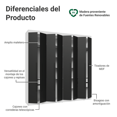 18x de $ 1,055.50 sin intereses9% OFF$ 18,99900$ 20,89900Precio unitario /AgotadoClóset Matrimonial Venus 8 Puertas Batientes Blanco/Neg...