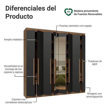 Clóset Matrimonial Venus 8 Puertas Batientes con Espejo...