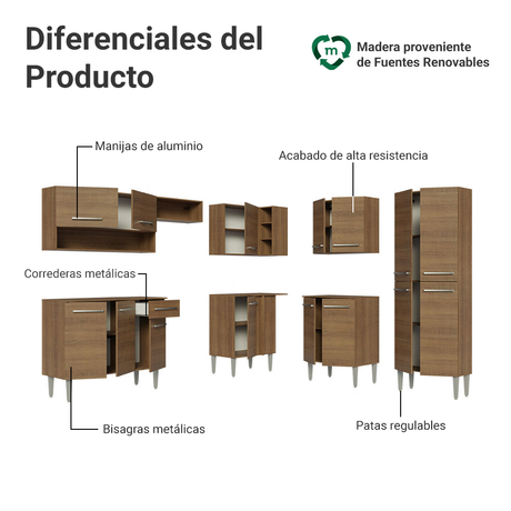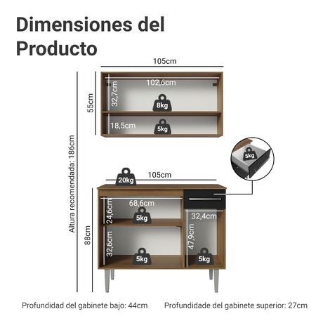 Cocina Integral 105cm Marrón Emilly 03