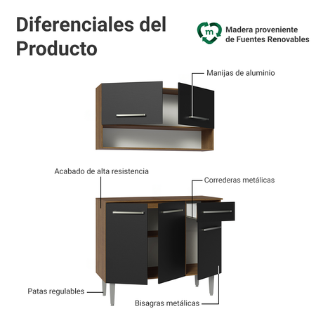 Cocina Integral 105cm Marrón/Negro Emilly 03