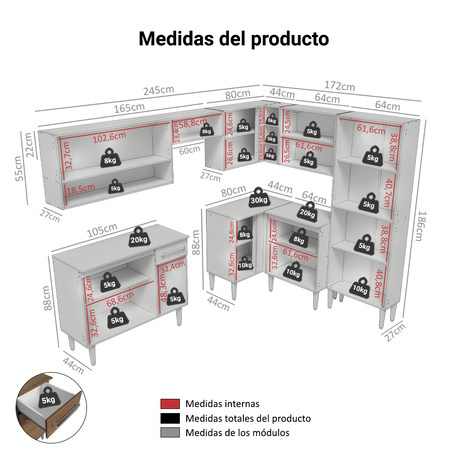 12x de $ 1,269.08 sin intereses9% OFF$ 15,22900$ 16,75200Precio unitario /AgotadoCocina Integral 260cm Blanco/Marrón Diamante 02